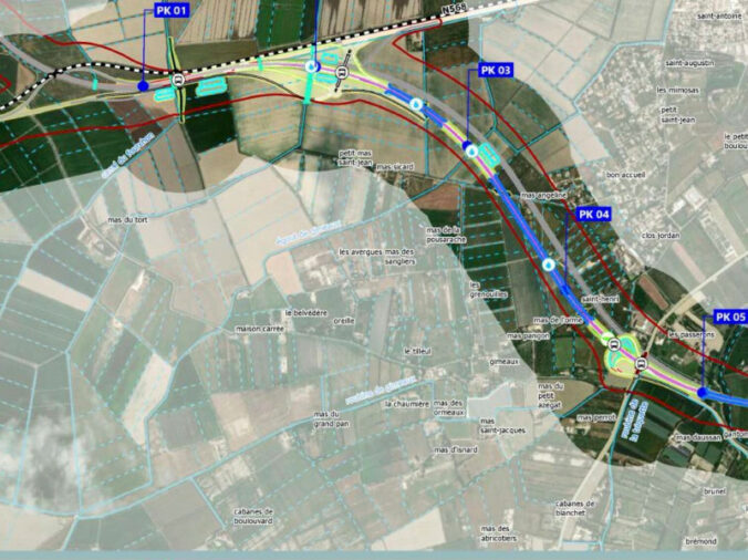 Le projet prévoit 13 kms en tracé neuf (2×2 voies) et 13 kms de RN113 à réaménager (dont en 2 x 3 voies sur 4 km)
